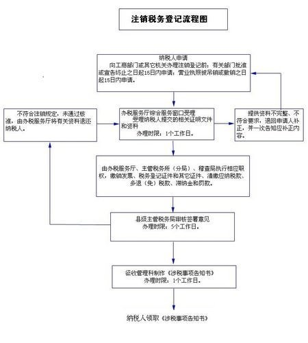 5、主管税务机关对纳税人实施注销税务稽查(核准) . 6.纳税人凭主管税务机关实施注销税务稽查(核准)后加盖同意注销意见的《注销税务登记申请表》、原注销受理回执及税务登记证到主管区局或主管税务所的综合服务窗口办理注销核准手续。